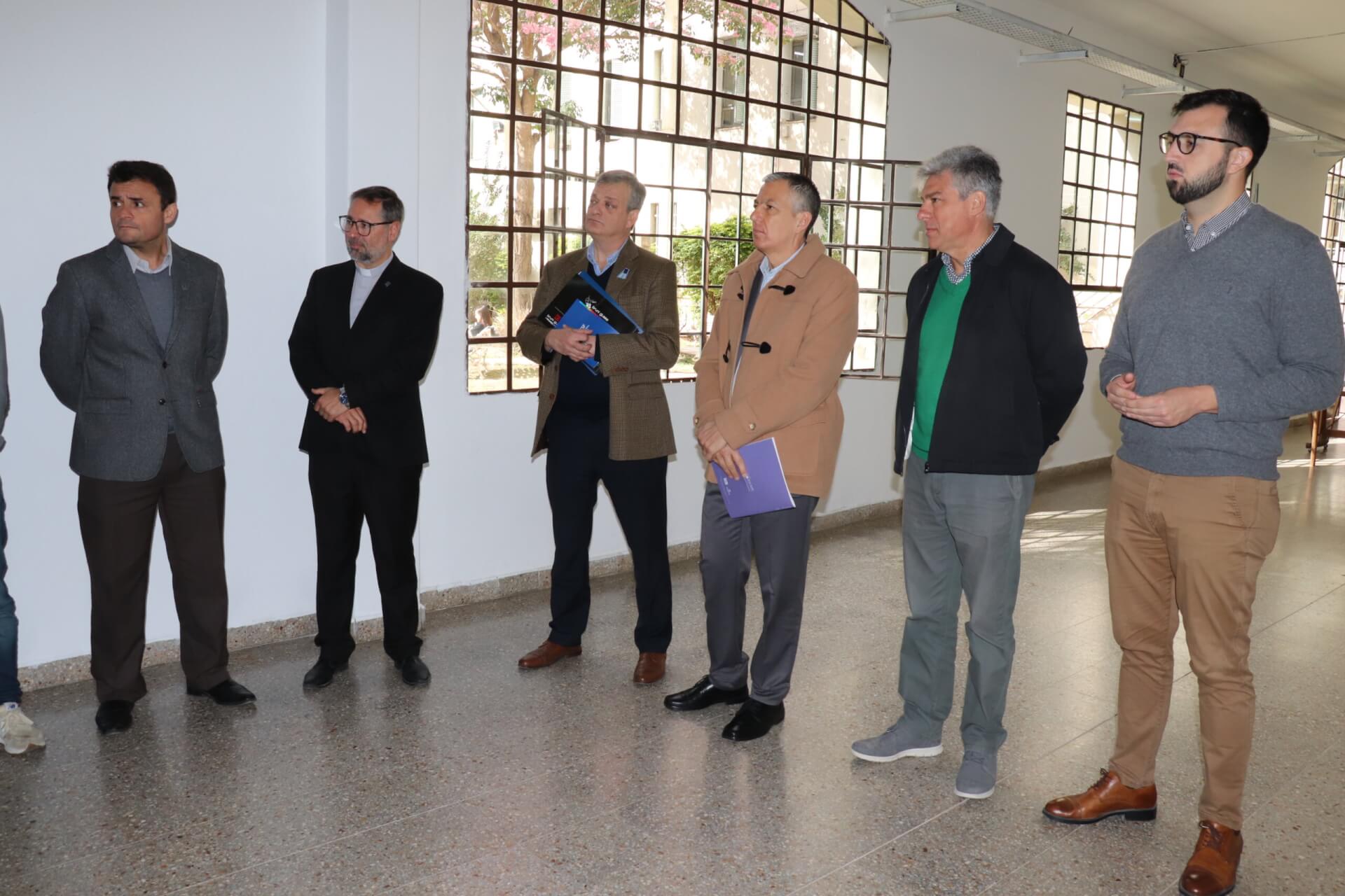 Junto a las autoridades y atentos a las explicaciones del director de la carrera desde sus inicios, DI Gonzalo Savogin, se encontraban las dos primeras licenciadas en Diseño Industrial de la provincia y hoy docentes de la Casa, Mariana Giobando y María Lucila Villalba; los docentes Matías Wouilloz e Ignacio Cardoso, y el egresado Lucas Gette, quien como estudiante fuera premiado internacionalmente. Se suman tres estudiantes más a esta nómina.