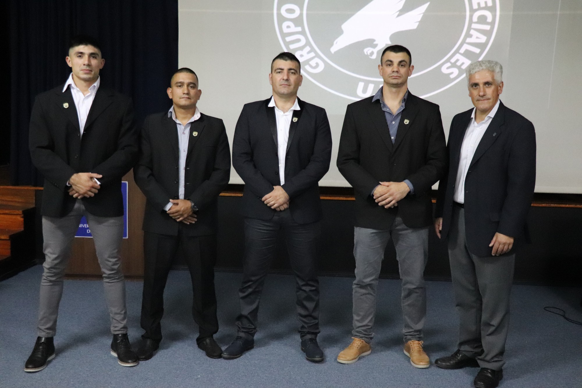 Los integrantes del GOE que participaron de la charla son el Comisario Sergio Lamanna (Téc. Superior en Seguridad Pública. Negociador Policial -Escuela Grupo Especial Operaciones Federales, Policía Federal-. Gerenciador Policial -Escuela Grupo Especial Operaciones Federales, División Especial de Seguridad Halcón- y Operador Táctico -Grupo de Operaciones Especiales-), el Subinspector Nicolas Cardozo (Operador Táctico -Grupo de Operaciones Especiales-), el Oficial de Policía Mauro Ocampo (Negociador Policial -Escuela División Especial de Seguridad Halcón-. Operador Táctico -Grupo de Operaciones Especiales-) y el Oficial de Policía Leandro Stinson (Téc. Superior en Seguridad Pública. Negociador Policial -Escuela División Especial de Seguridad Halcón-Operador Táctico -Grupo de Operaciones Especiales-).