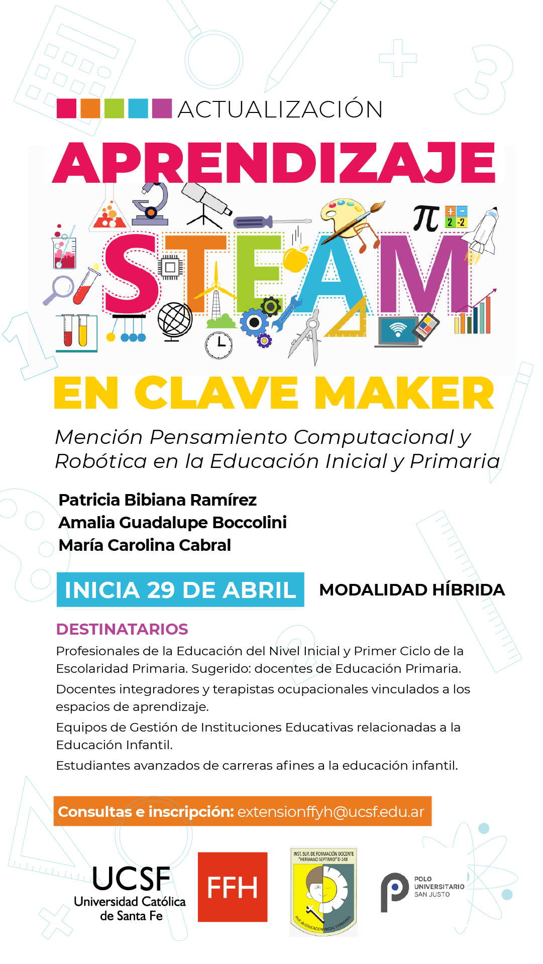 La Facultad de Filosofía y Humanidades de la UCSF organiza la actualización académica: Aprendizaje Steam en clave maker: Mención Pensamiento Computacional y Robótica en la Educación Inicial y Primaria.