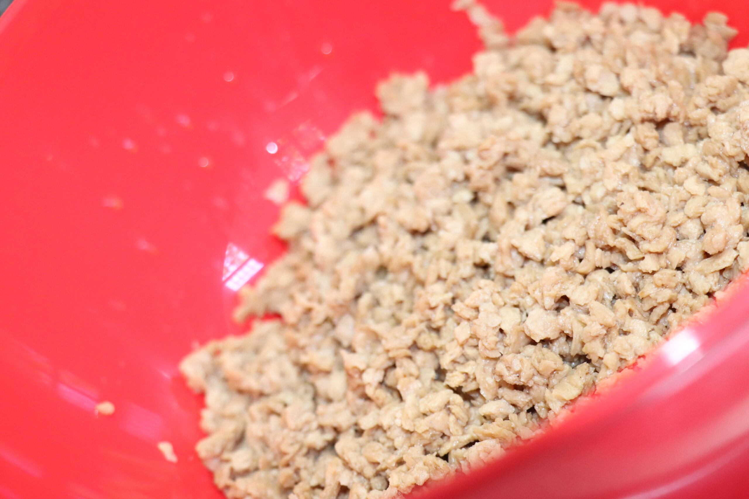 - Hidratar el texturizado de soja con 250 cc. de caldo de carne y una cda. de salsa de soja.
