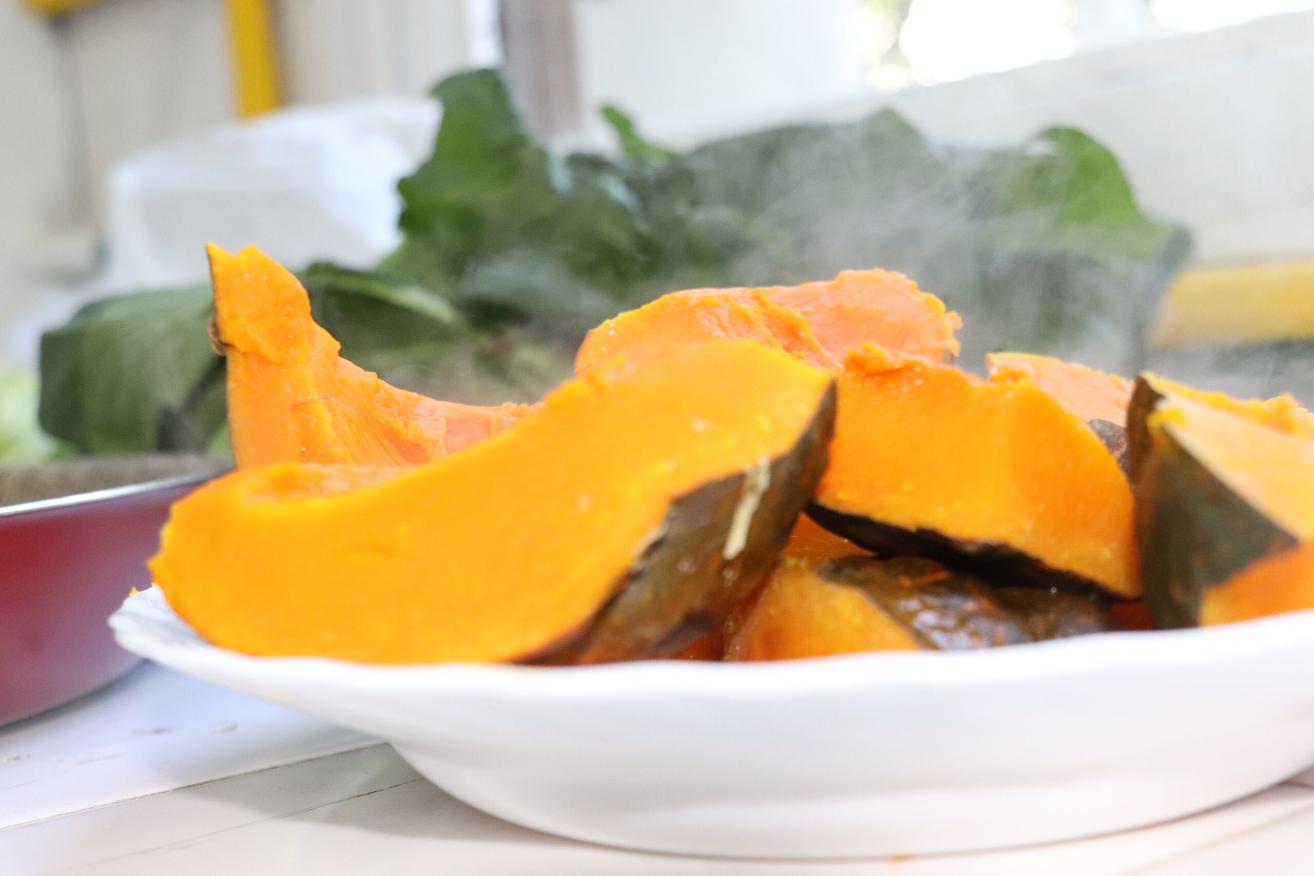 - Hornear el zapallo y cuando esté tibio hacer un puré. Agregar los huevos y condimentar.