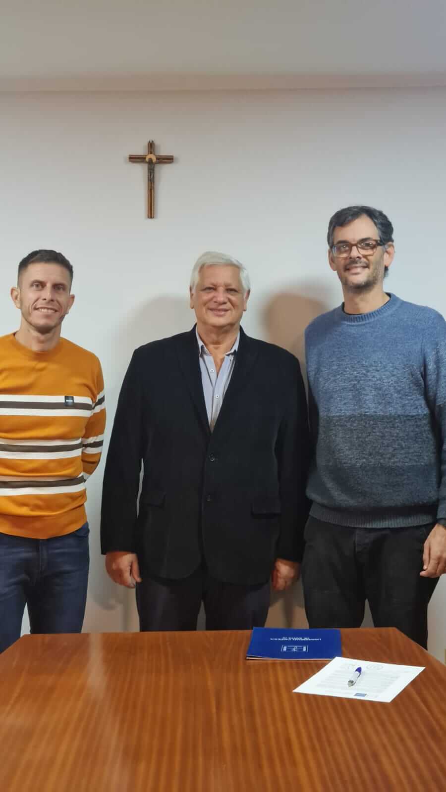 La firma del convenio estuvo encabezada por el vicedecano de la Facultad de Arquitectura y Diseño de la UCSF, Arq. Pablo Pachoud y el presidente de APICOFOM, Guillermo Fachinello.