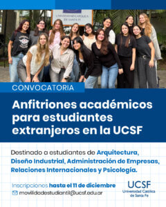 Las inscripciones están abiertas hasta el 11 de diciembre a través del correo movilidadestudiantil@ucsf.edu.ar