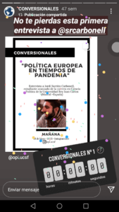 Con este horizonte claro, en el 2020 potenciaron su canal de Instagram @opi.ucsf con una nueva sección llamada Conversionales, donde se convocó a profesionales de la Ciencia Política y las Relaciones Internacionales, así como estudiantes avanzados de universidades extranjeras, para desarrollar diversos temas ligados a la actualidad internacional.