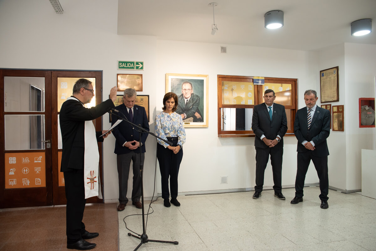 De Feo destacó que la designación de la unidad académica con el nombre de Enrique Shaw se debió a los principios y valores que este laico llevó a la práctica, encarnando las enseñanzas evangélicas y la Doctrina Social de la Iglesia. “Encomendamos a quien será el primer Beato empresario del mundo toda la obra de esta Facultad de Ciencias Económicas que lleva su nombre y de toda nuestra querida Universidad”.