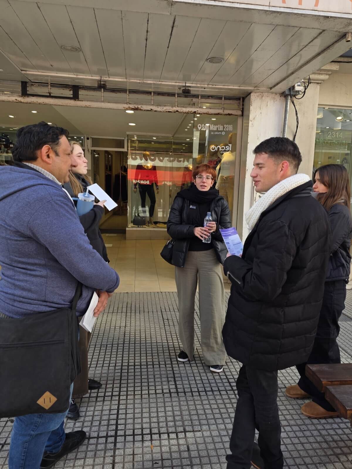 La actividad se desarrolló en la peatonal San Martín (Cortada Falucho) y fue organizada por la Cátedra Optativa “Derechos de los Consumidores y Usuarios”, a cargo de las abogadas Sturla y Fernández. Allí, los estudiantes de Abogacía interactuaron directamente con la ciudadanía.