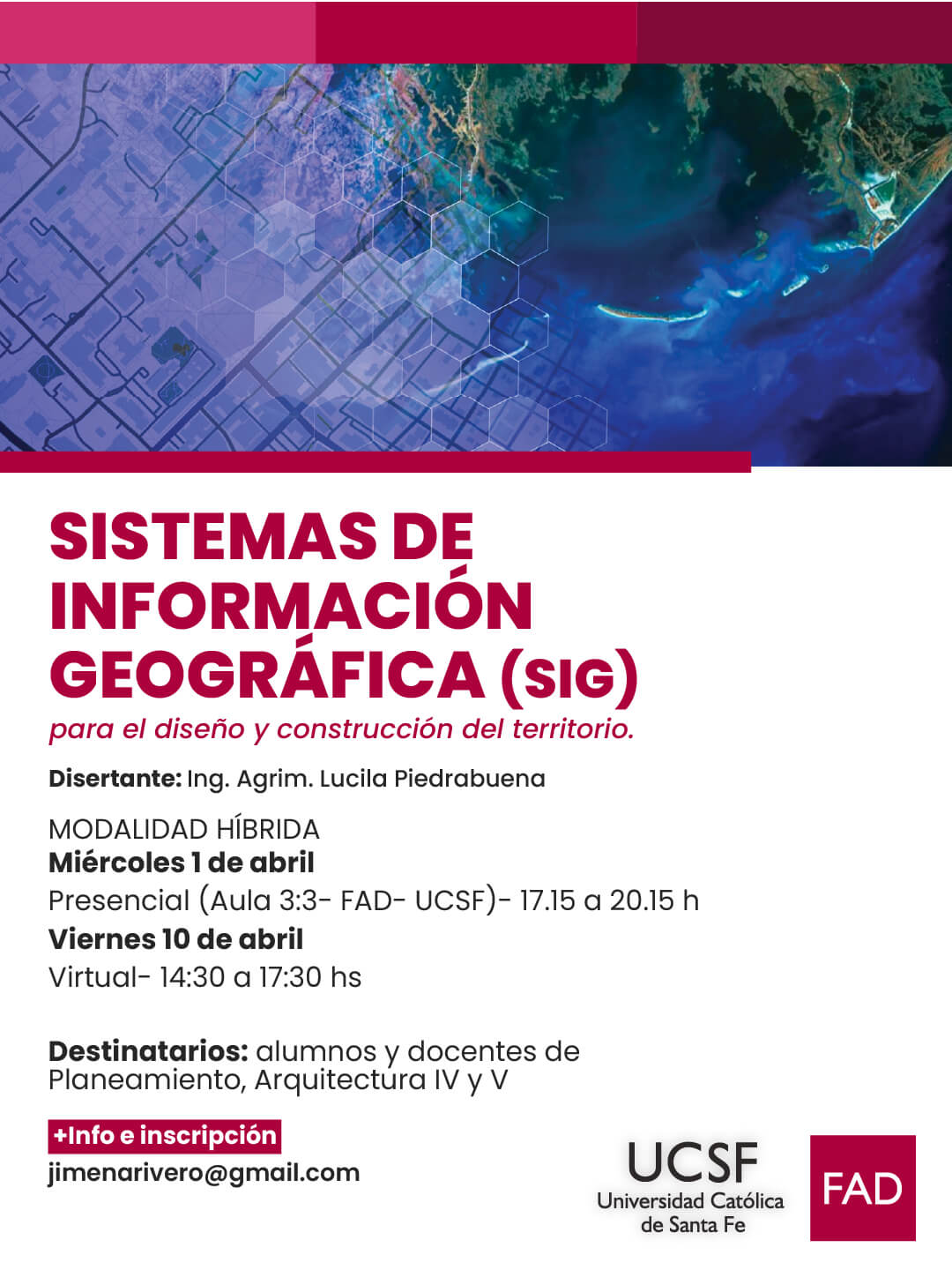 UCSF Santa Fe Echagüe 7151, Santa FeLa Facultad de Arquitectura y Diseño invita a participar del Taller de SIG (Sistemas de Información Geográfica), una propuesta de formación orientada al análisis, diseño y construcción del territorio a […]