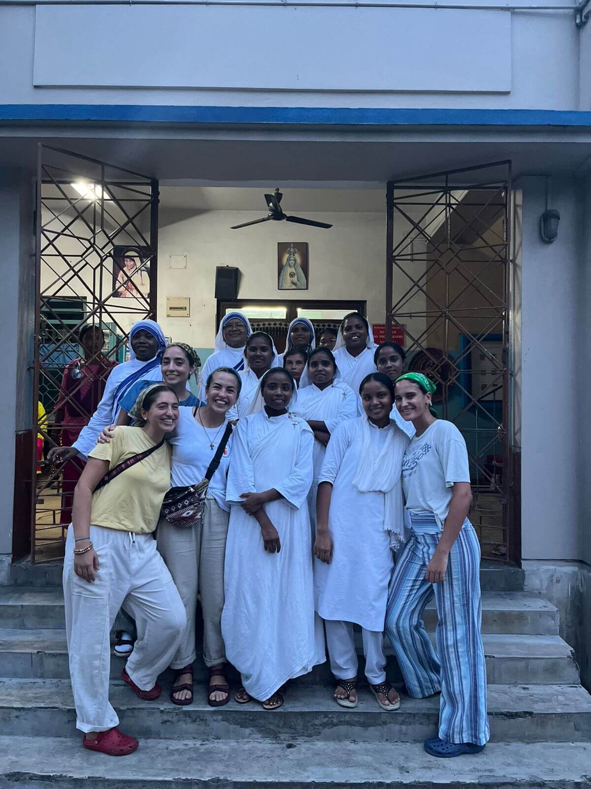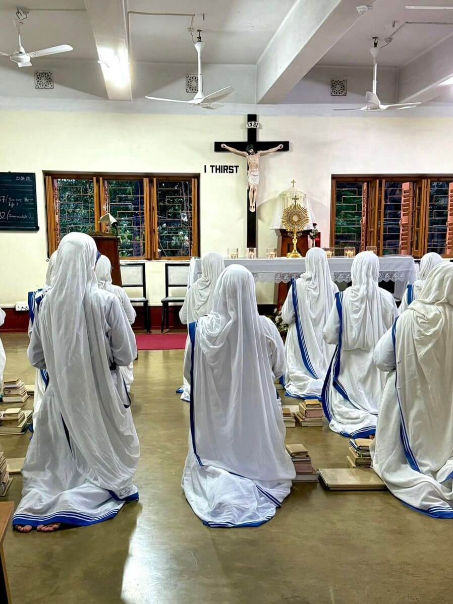 A las 18 nos reuníamos en la Mother House —la casa madre de las Misioneras de la Caridad— para la hora santa y la adoración eucarística. El día terminaba con la cena y un descanso temprano.