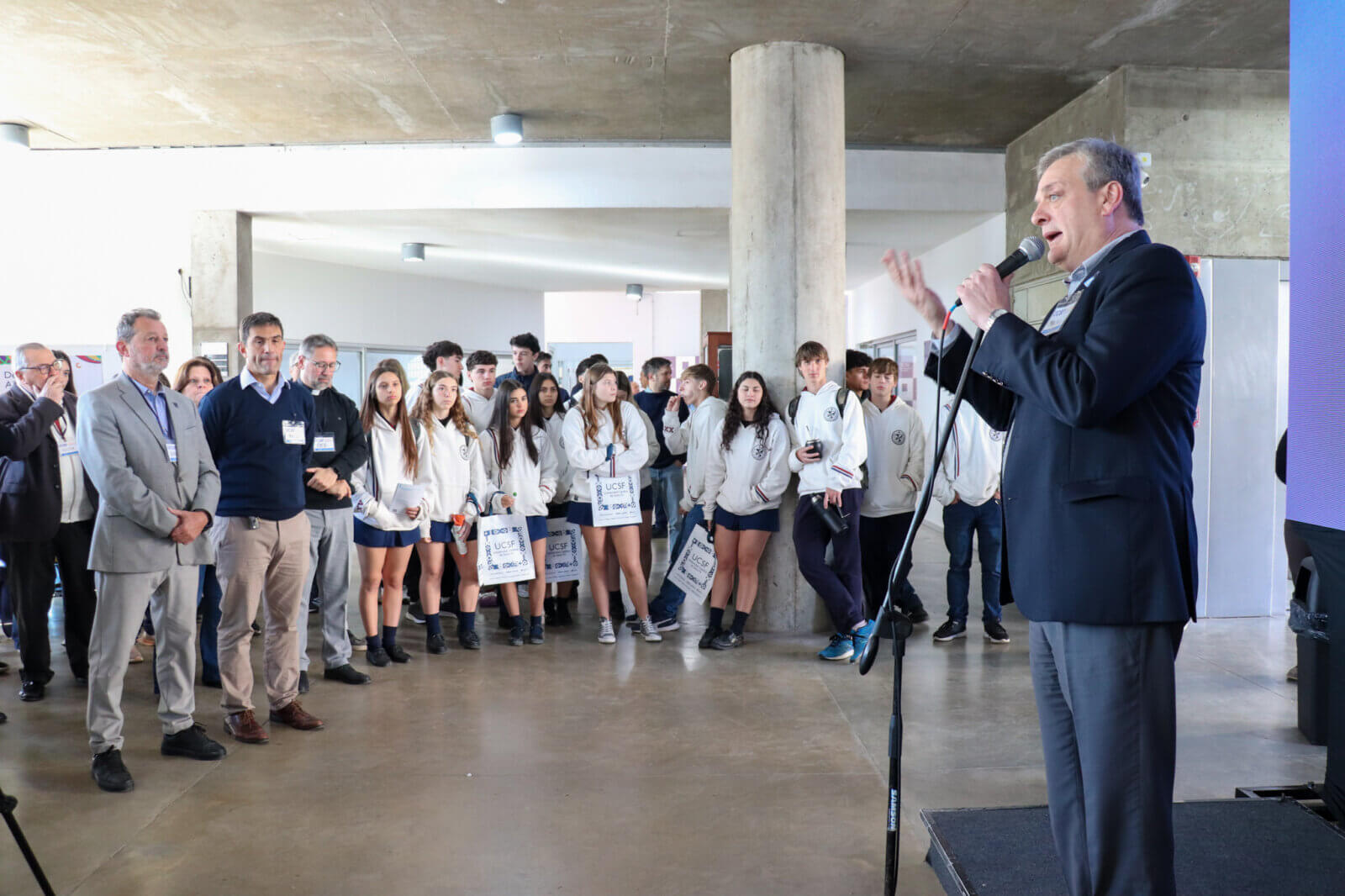 En el acto de apertura, el rector de la UCSF, Mg. Lic. Eugenio M. De Palma, dio la bienvenida a los presentes y destacó la importancia del evento: “Esta feria ya tiene una marca registrada. Cada año buscamos superarnos, para transmitirles con claridad las carreras que se dictan en nuestra universidad y las posibilidades laborales que ofrecen”.