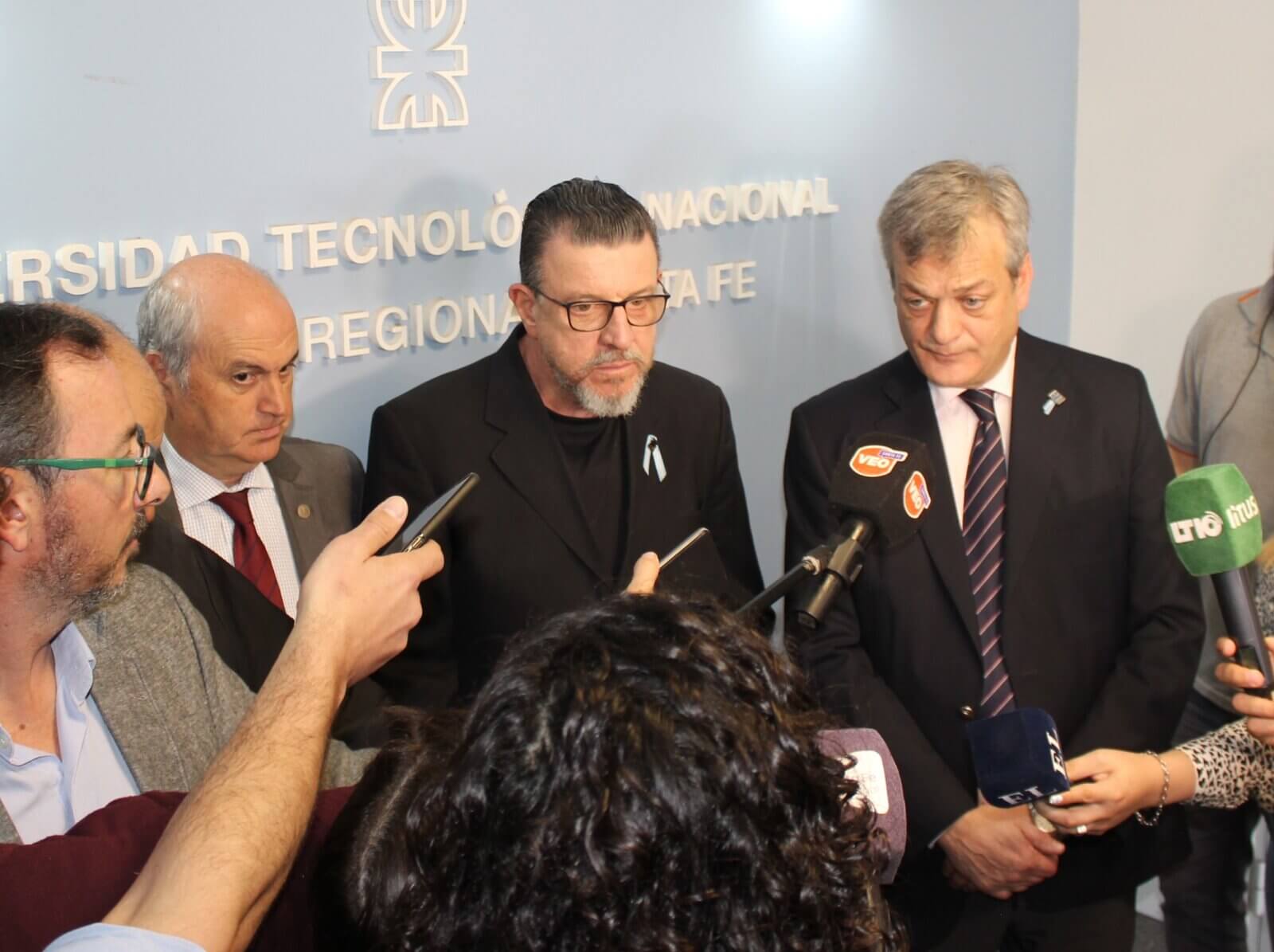 El rector de la Universidad Católica de Santa Fe y presidente protémpore de la Mesa del Diálogo, Mgter. Lic. Eugenio Martín De Palma, junto al decano de la UTN Santa Fe, Ing. Eduardo Donnet y el secretario de la Mesa, Javier Aga -secretario de Relaciones Institucionales de la Universidad Nacional del Litoral, encabezaron la reunión.