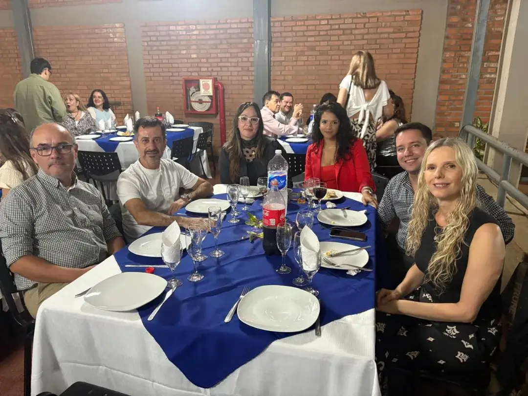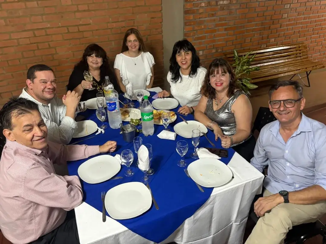 Más de 60 integrantes de todas las facultades, equipos administrativos y autoridades se reunieron para compartir una cena distendida que combinó camaradería y celebración. La velada contó con la presencia de Valeria Fiore y Juan Manuel Díaz, representantes del Superior Tribunal de Justicia y quienes fueran delegados de la entonces decana de la Facultad de Derecho y Ciencia Política en Posadas.