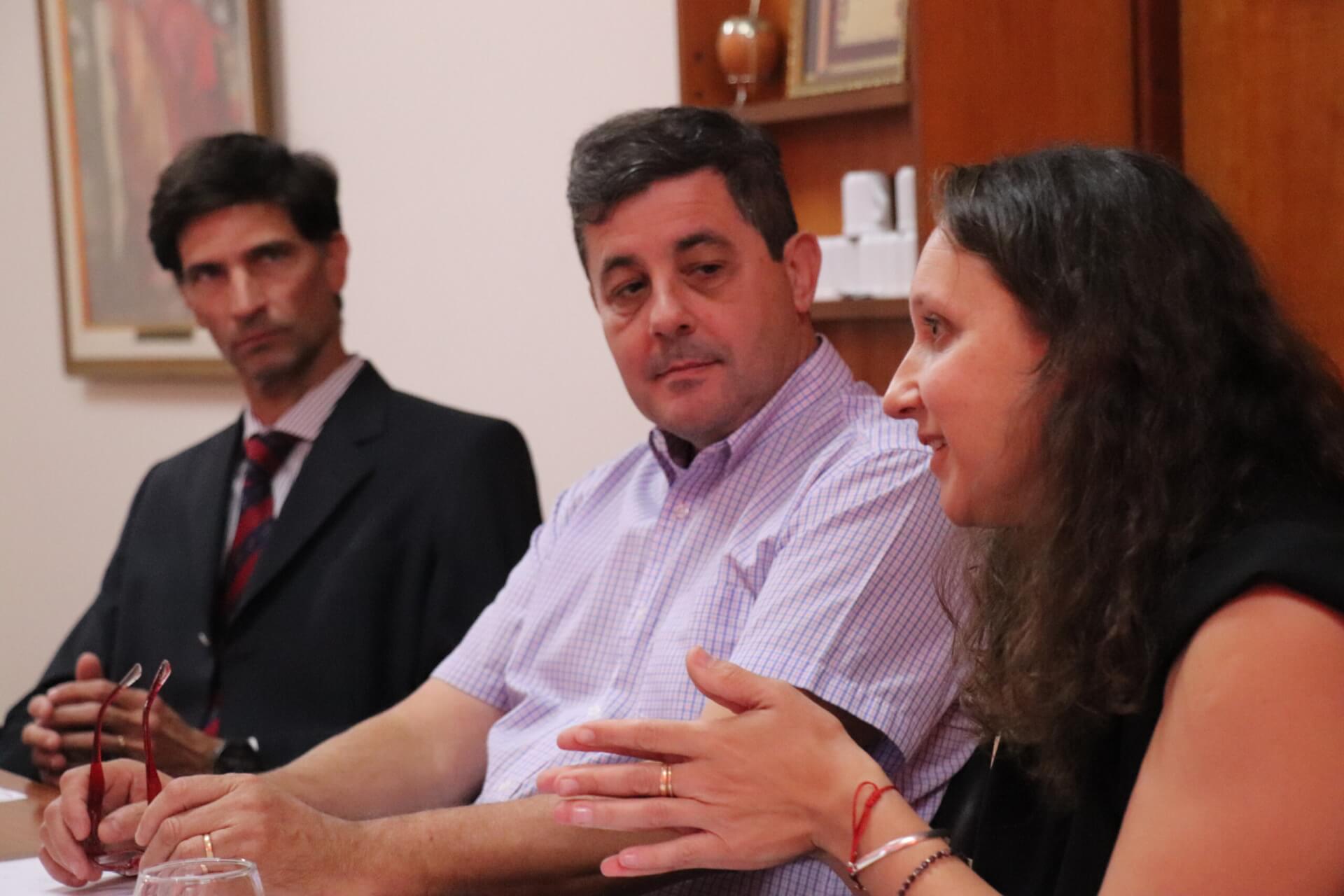 Valentina Fassi, Exequiel Kay, Matías Berlincourt, Franco Zervini, Mariano Colombo y Silvana Serniotti, tuvieron la oportunidad de charlar con el Rector y la decana de la FFH, Lic. Milagros Vigil.
