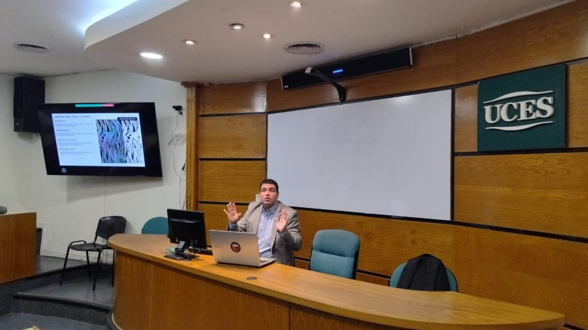 El Lic. Grether, secretario de Ciencia, Técnica y Extensión de la Facultad de Ciencias Económicas de la UCSF, fue invitado por el decano de la Facultad de Ciencias Empresariales de la Universidad de Ciencias Sociales y Empresariales (UCES), Dr. Gustavo Adamovsky, a disertar en una jornada sobre la toma de decisiones basada en datos.