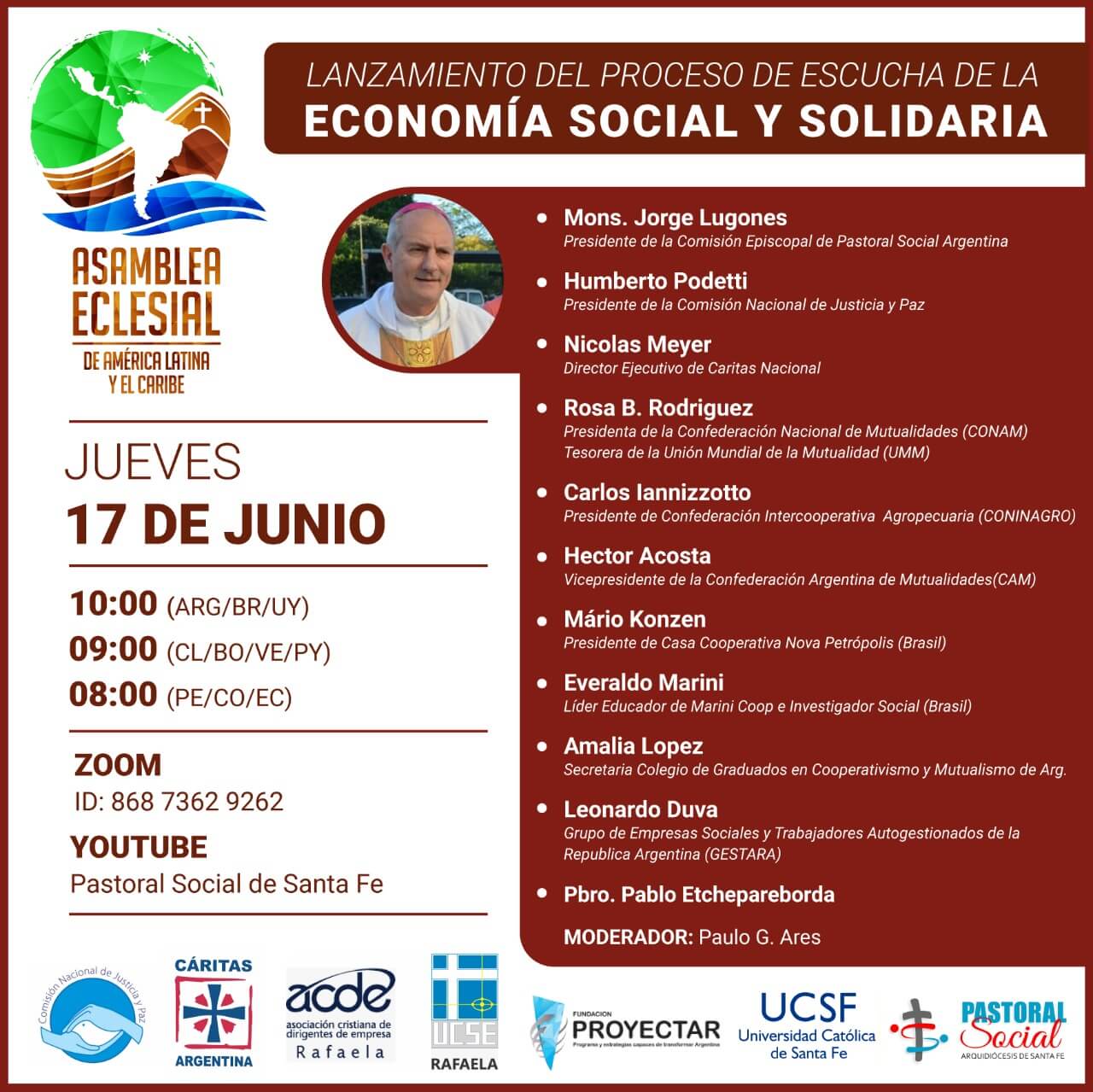 Se invita a participar de un encuentro virtual, este jueves, a todos aquellos que forman parte de la Economía Social y Solidaria de la región. El programa del evento puede verse ACÁ, participarán referentes de esta visión de la economía, así como del proceso de escucha eclesial que se realiza en América Latina y el Caribe.