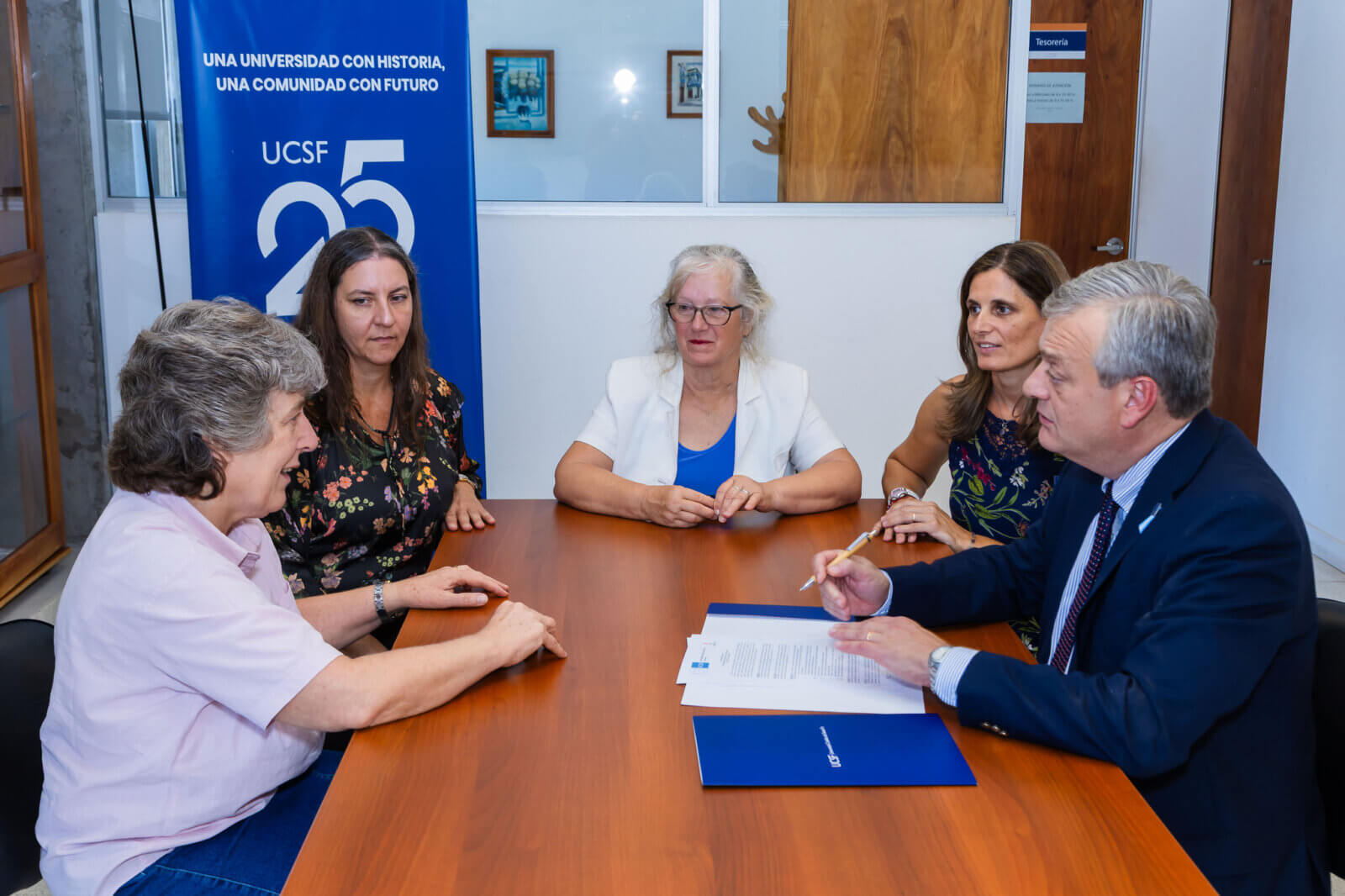 Estuvieron presentes en la firma el rector de la UCSF, Eugenio Martín De Palma, la delegada del Rector de la sede San Jerónimo, María Laura Ocampo, la directora del Instituto Juan XXIII, Mirta Fantín y autoridades de la Facultad de Ciencias Agropecuarias: Viviana Orcellet, delegada del Rector y Mónica Berlanda, secretaria Académica.