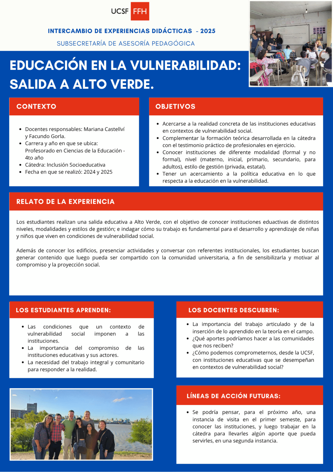 Facundo Gorla y Mariana Castellví – FFyH, Santa Fe: “Educación en la vulnerabilidad: salida a Alto Verde”.