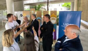 La presentación de la Semana Solidaria se realizó en la sede de la Universidad Católica de Santa Fe. Allí estuvieron presentes también: el secretario Ejecutivo de la Mesa del Diálogo y secretario de Relaciones Institucionales de UNL, Javier Aga, vicepresidente de la Comunidad Israelita, Daniel Steinberg, el pastor evangélico Walter Altare y el secretario de Gestión Estratégica de la UCSF, Néstor Dona.