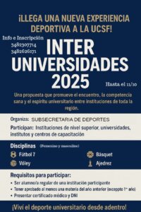 Participá de las actividades deportivas que ofrece la UCSF en cada una de sus sedes. No importa tu nivel, lo importante es participar, enviá un mensaje a los docentes para […]