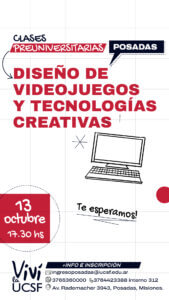 Clase Preuniversitaria de Diseño de Videojuegos y Tecnologías Creativas en Sede Posadas