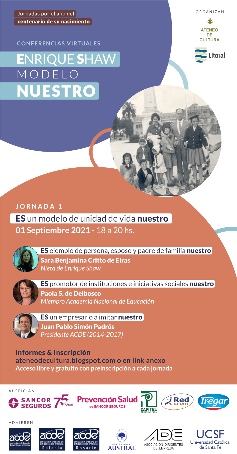 Inscripciones: https://www.eventbrite.com.ar/e/enrique-shaw-modelo-nuestro-tickets-166338572147