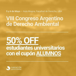 El próximo jueves 5 y viernes 6 de mayo se realizará, de manera 100% presencial, el VIII Congreso Argentino de Derecho Ambiental en el Aula Magna, Facultad de Derecho (UBA).